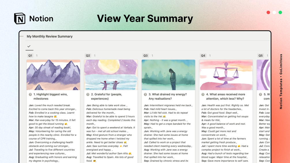 ✨ With the Monthly & Yearly Reflection Hub, you can conveniently review your entire year's highlights, milestones, achievements, and even setbacks all on a single page.