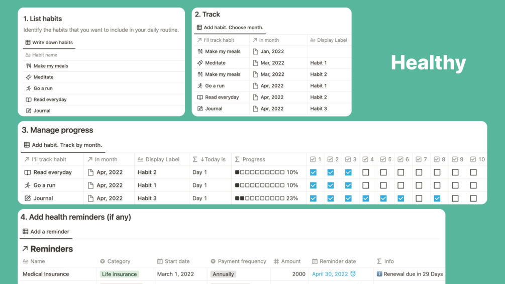 2. Notion Dashboard - for Healthy, Wealthy & Wise