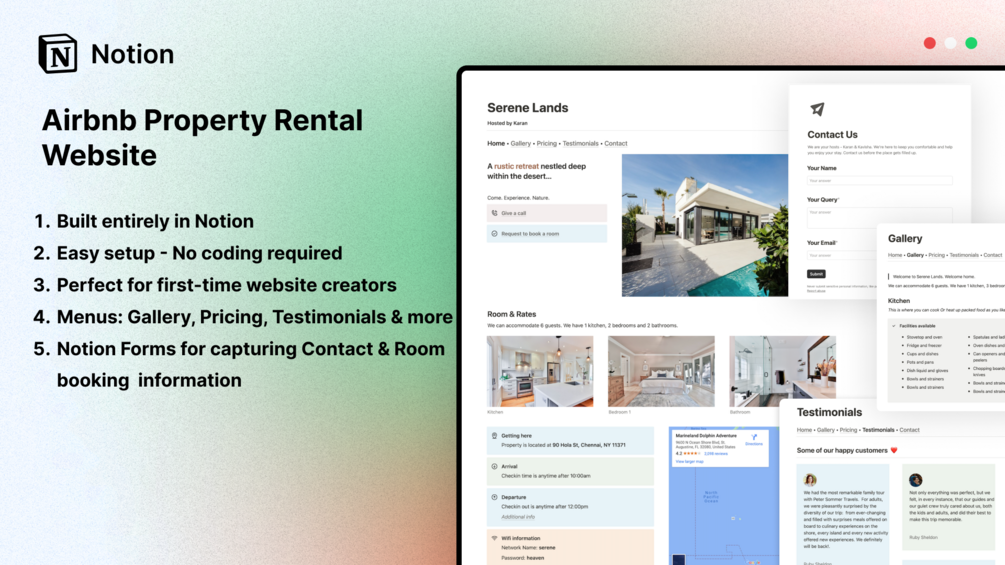 - Menus included - Home, Gallery, Pricing, Testimonials and Contact